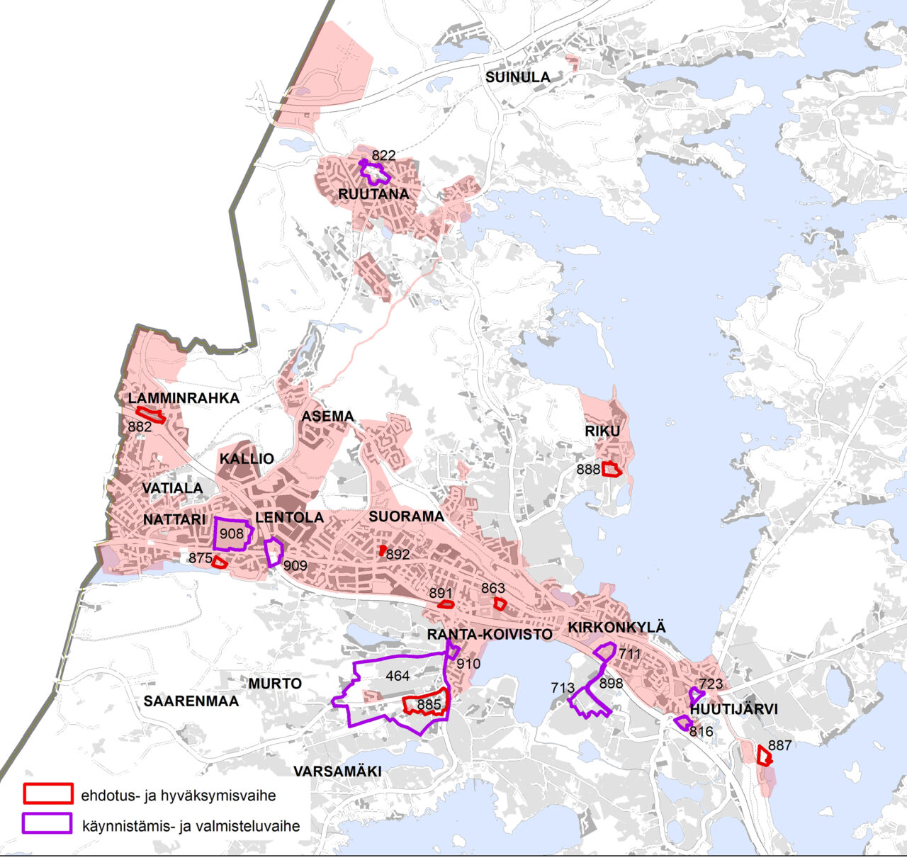 Kaupungin ajantasaista kaavatilannetta, toimenpide- ja rakennuskieltoja sekä vireillä (valmisteilla) olevia kaavoja on mahdollista tarkastella karttapalvelussa.