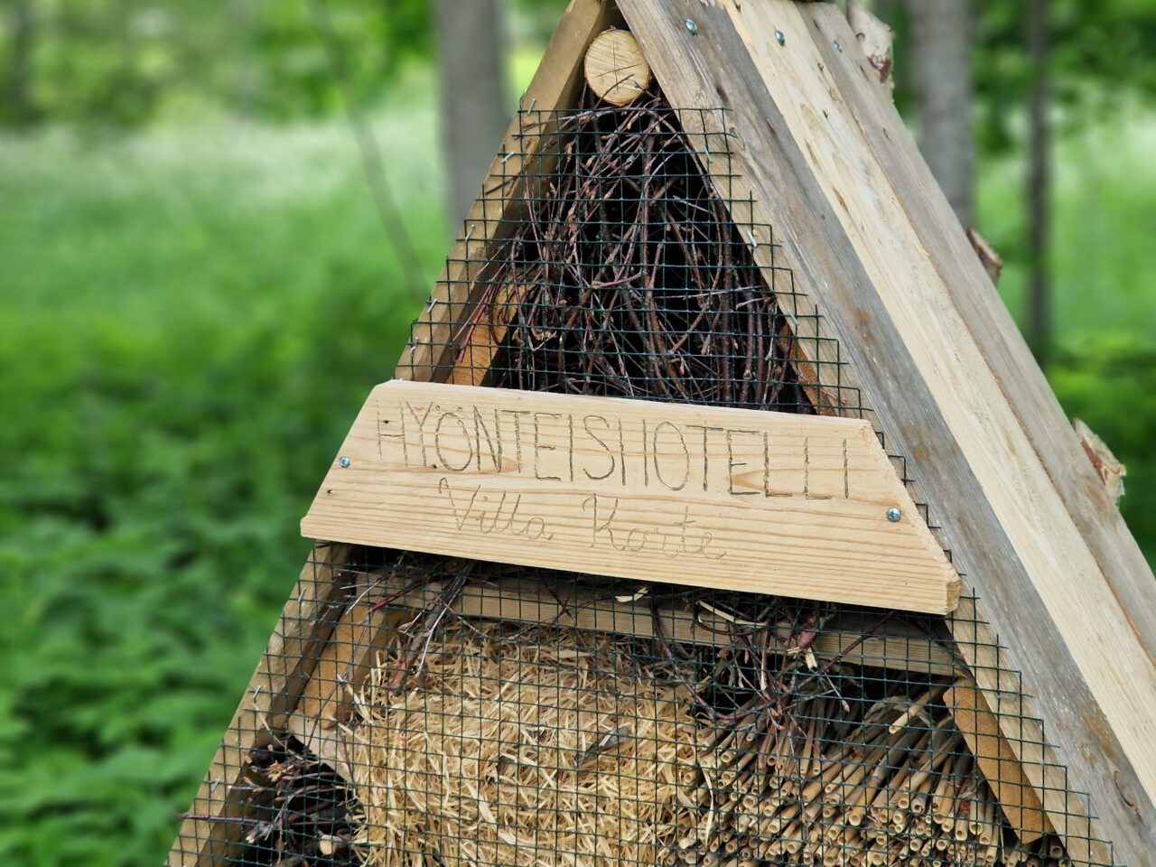Kangasalan hyönteishotellit ovat ulkoalueyksikön käsityönä luonnonmateriaaleista valmistettuja hulppeita huviloita pörriäisille. Kangasalan kaupunki kannustaa asukkaita rakentamaan myös omia hyönteishotelleja pihoilleen ja parvekkeilleen.