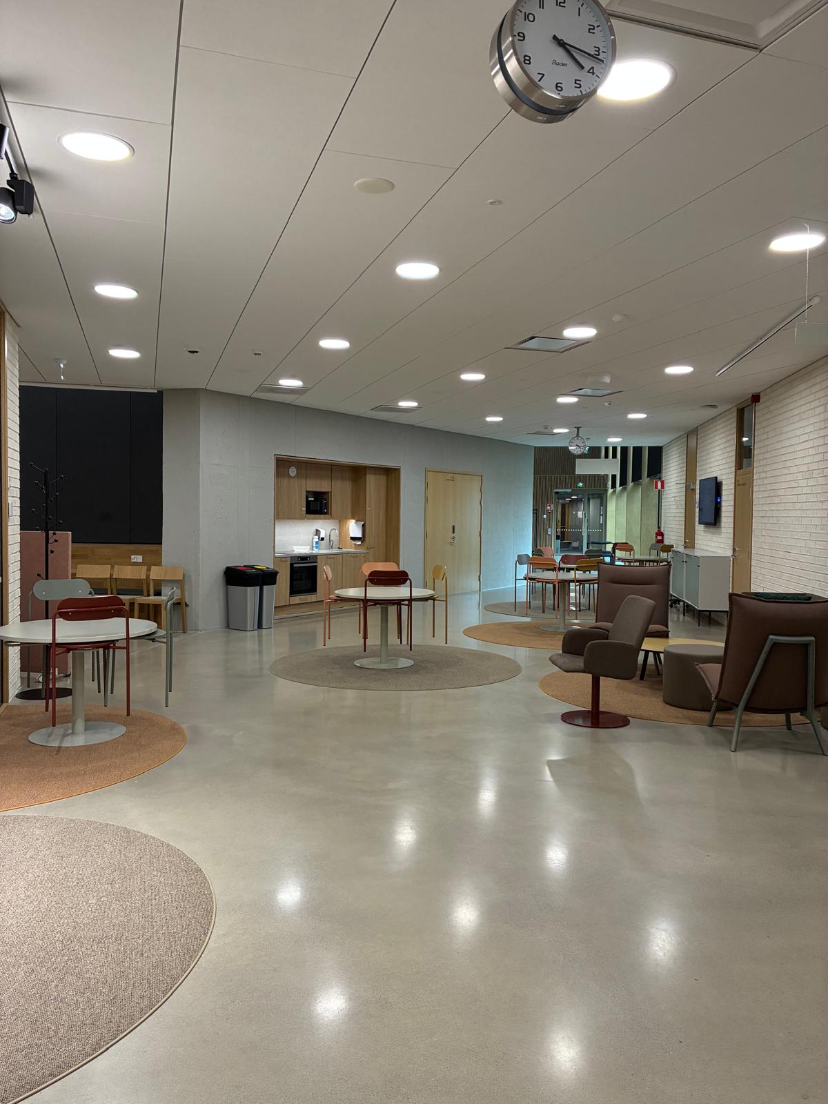 Halliin tullessa on pieni kahviotila, joka on hallin käyttäjille käytettävissä (kahvinkeitin, vedenkeitin, mikro, uuni, jääkaappi ja pakastin).