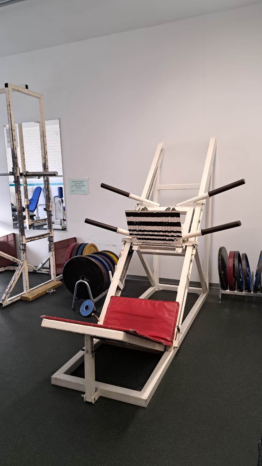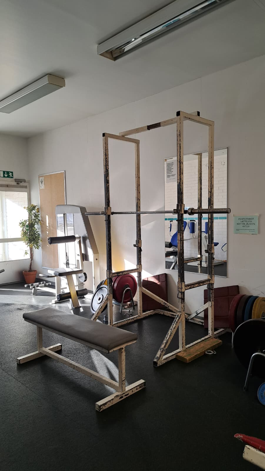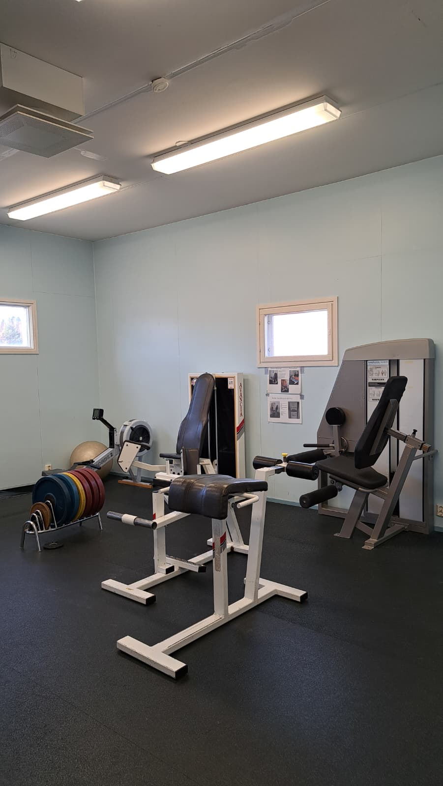 Pelialuerajat: lentopallon pääkenttä pitkittäin, sulkapallo yksi kenttä pitkittäin, tenniskenttä pitkittäin, koripallo (vajaa), sähly maaliviivat. Liikuntasaliin kulku on sisäpihalta, vanhaa puukoulua vastapäätä, pienen katoksen ovelta.