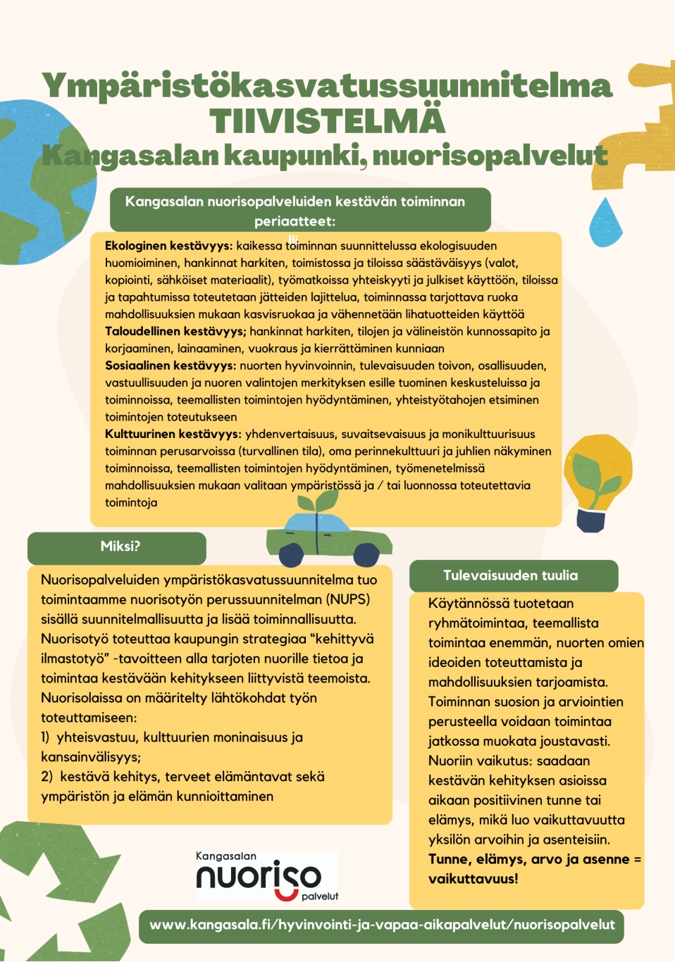 Kangasalan nuorisopalveluiden kestävän toiminnan periaatteet: