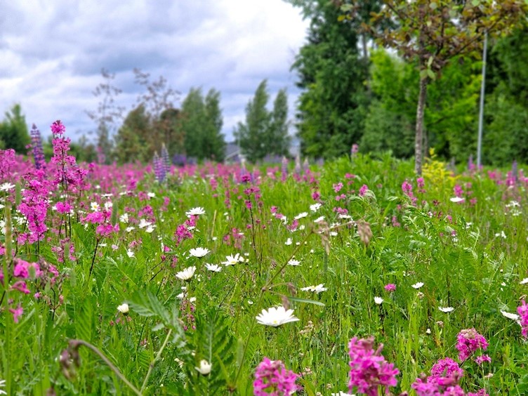 Kuva: Noormarkun leikkikentän niitty Kangasalla Tursolan alueella. Kangasalan kaupunki