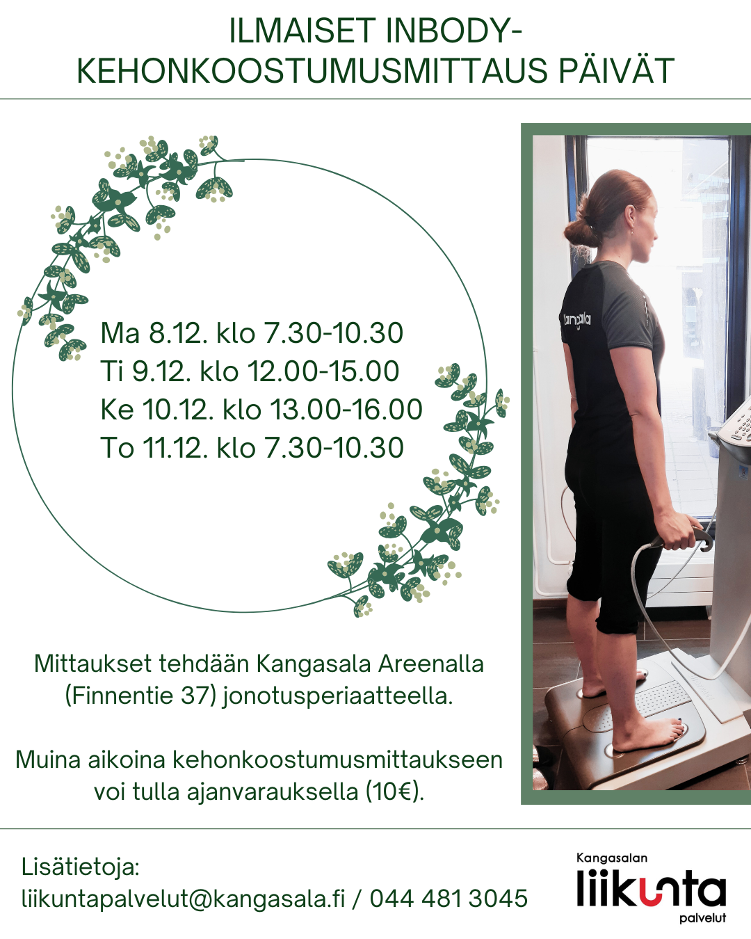 Kangasalan liikuntapalvelut järjestävät ilmaiset InBody-kehonkoostumusmittaus päivät: