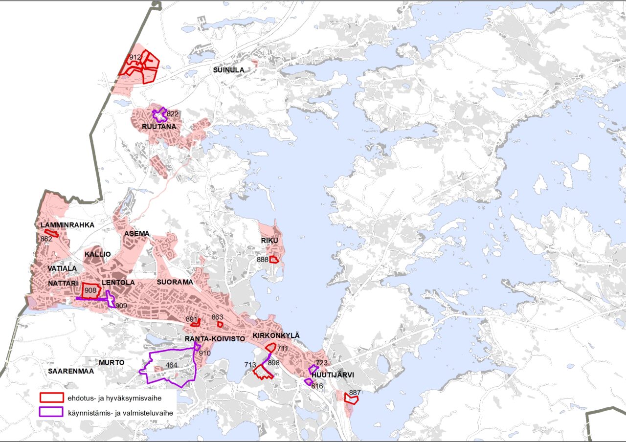 Tarastenjärven, Ruutanan ja Aseman alueiden osayleiskaavan laatiminen on noussut ajankohtaiseksi seudun lähijunaliikenneselvityksissä esiin nousseen Ruutanan seisakkeen sekä siihen liittyvien maankäytön ratkaisujen tutkimisen tarpeen sekä alueen liikenneverkon ja elinkeinoalueiden kehittymisen myötä. Vuonna 2026 käsitellään saatu palaute ja valmistellaan osayleiskaavan luonnokset nähtäville.