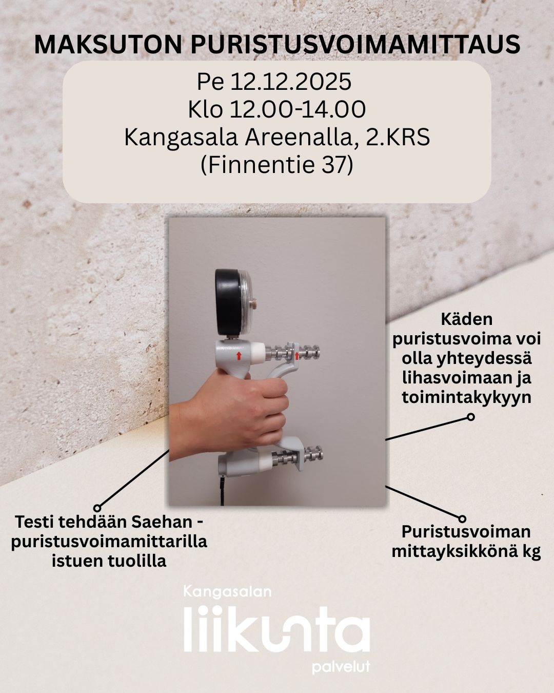 Maksuton mittaus Saehan-puristusvoimamittarilla liikunnanohjaajien tekemänä.