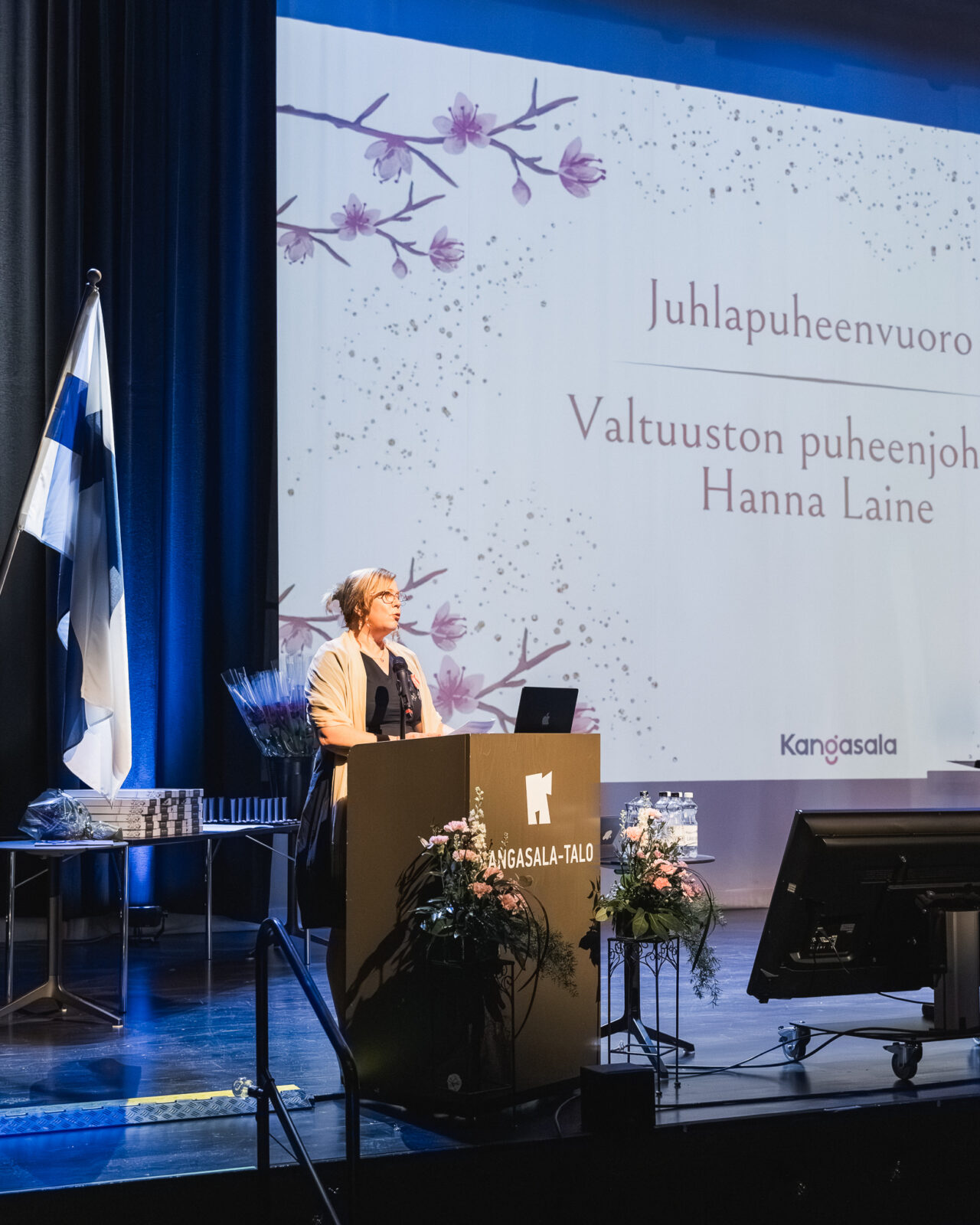 Valtuuston päätösjuhlassa juhlapuheen piti valtuuston puheenjohtaja Hanna Laine.